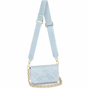 The Over The Moon delights with its versatile shape in quilted calf leather. The embroidered puffy Monogram pattern brings a statutory feel while the adjustable strap and gold-color chain deliver a myriad of carry options: elbow, short shoulder, cross-body, and long shoulder. With the strap removed, it can even be carried as an evening clutch.