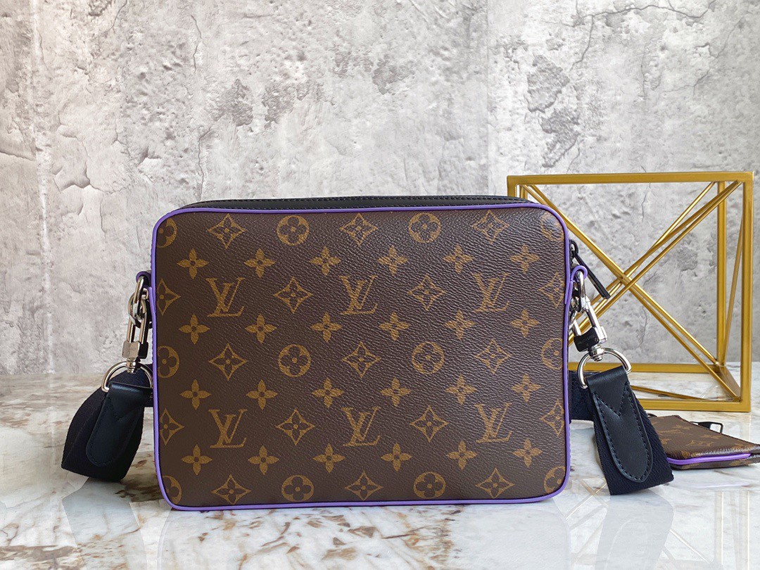 The ingenious, versatile design of the Trio Messenger now features a new look combining Monogram Macassar canvas with fine cowhide in vivid purple, one of designer Virgil Abloh’s favorite colors. Three bags in one, it integrates a removable zipped pocket and a removable pouch on the strap to hold coins and cards – ideal for contactless payment.