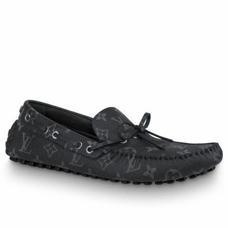 The Arizona moccasin in gray Monogram Eclipse canvas testifies to Louis Vuitton's tradition of craftsmanship with its hand-painted edges and hand-stitched vamp. This lightweight style is characterized by its tubular construction for extra flexibility and its supple outsole with rubber pads. It is finished with a matching lace.