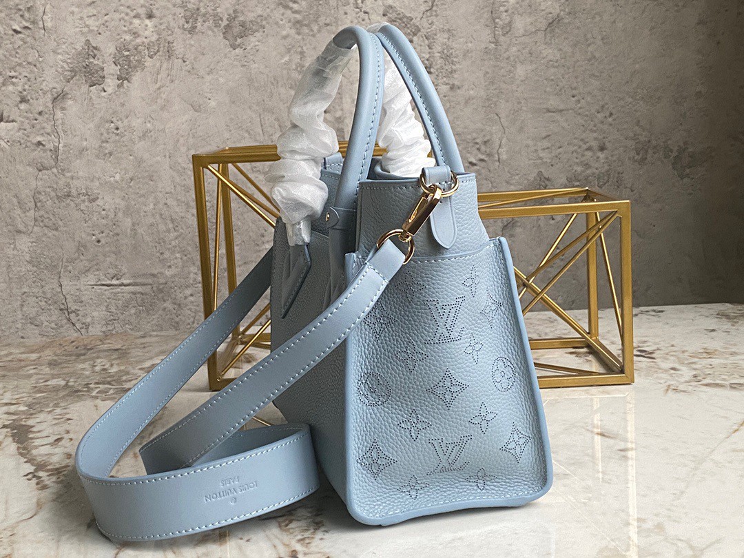Louis Vuitton On My Side PM Bag in Blue Calfskin and Mahina Leather M59432