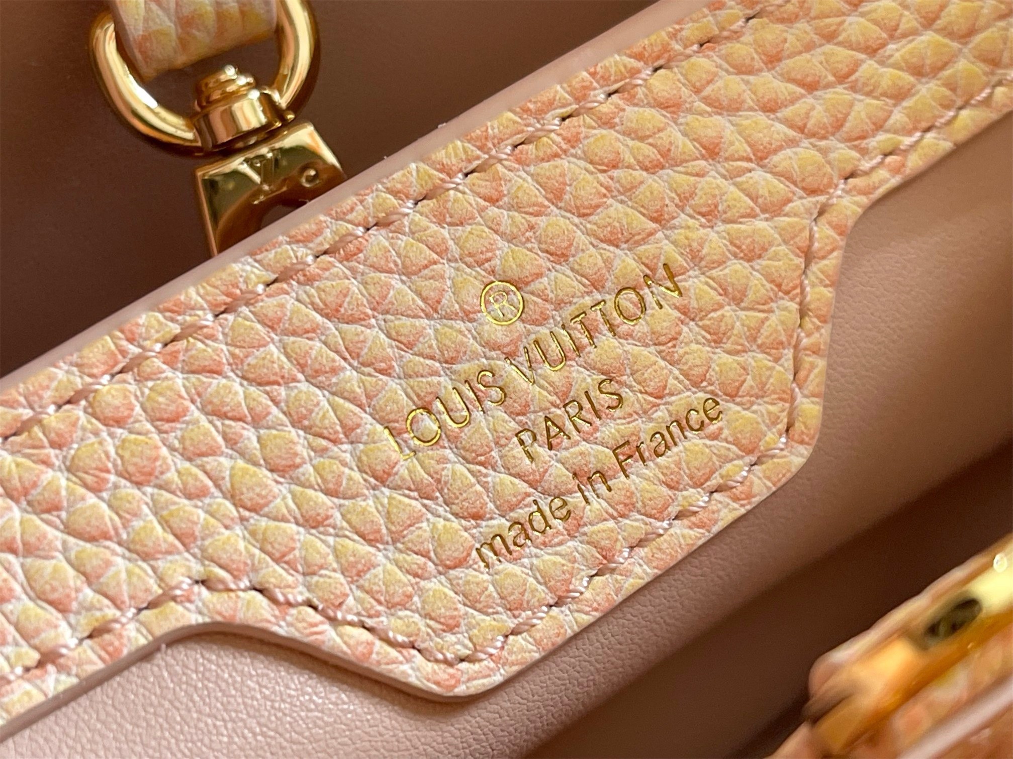 The one-handled Capucines BB handbag is made from Taurillon leather with a shimmery effect that seems to change color with the light. The seashell aspect of the signature LV Initials adds a luxurious touch while the removable chain, braided with leather, brings style and carrying options.