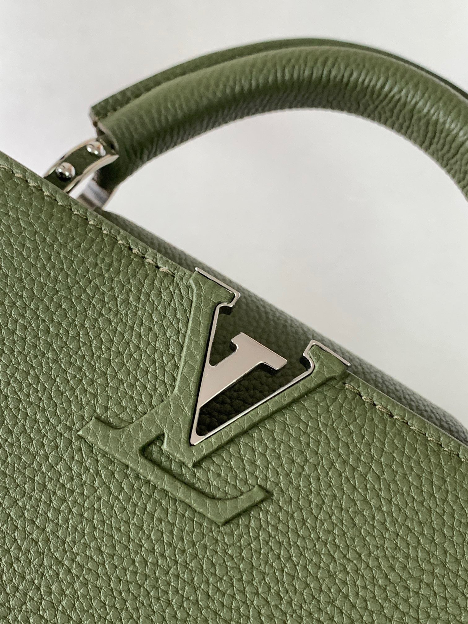 Fashioned from full-grain Taurillon leather, the now-classic Capucines BB handbag displays a host of House signatures: leather-wrapped LV Initials, jewel-like handle mounts inspired by historic trunks, and a distinctive flap with a Monogram Flower motif. Timelessly elegant, this charming model can be carried by hand or worn cross-body on its detachable strap. First launched in 2013, the Capucines is named for the Parisian street where Louis Vuitton first opened shop, in 1854.