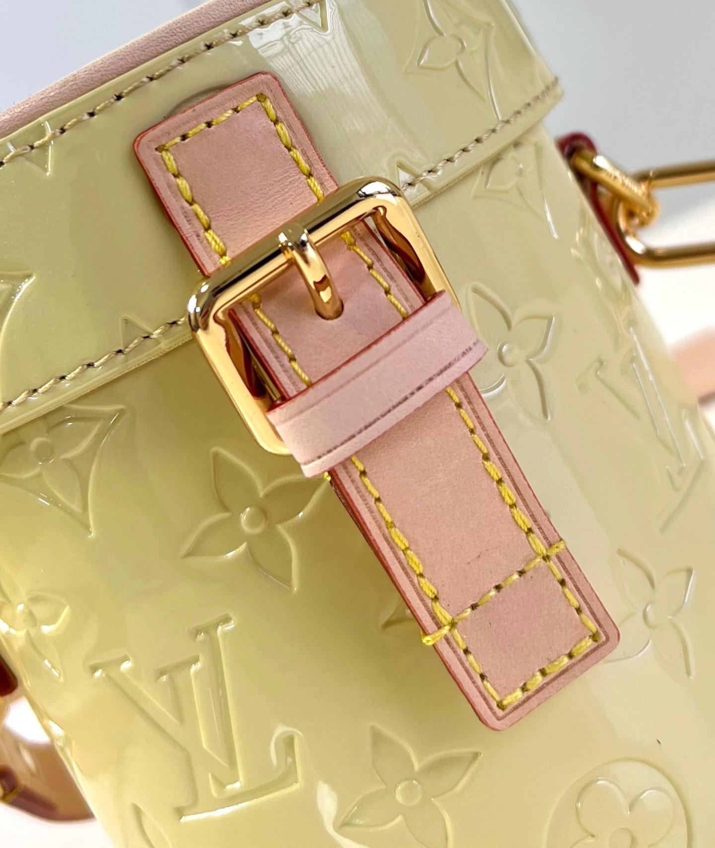 The Astor bag, with its removable top handle and detachable shoulder strap, looks playful in pastel-colored Monogram Vernis embossed leather. Immediately recognizable by its distinctive shape and buckle-and-magnet closure, it fits an iPhone as well as small essentials such as a small wallet and keys.