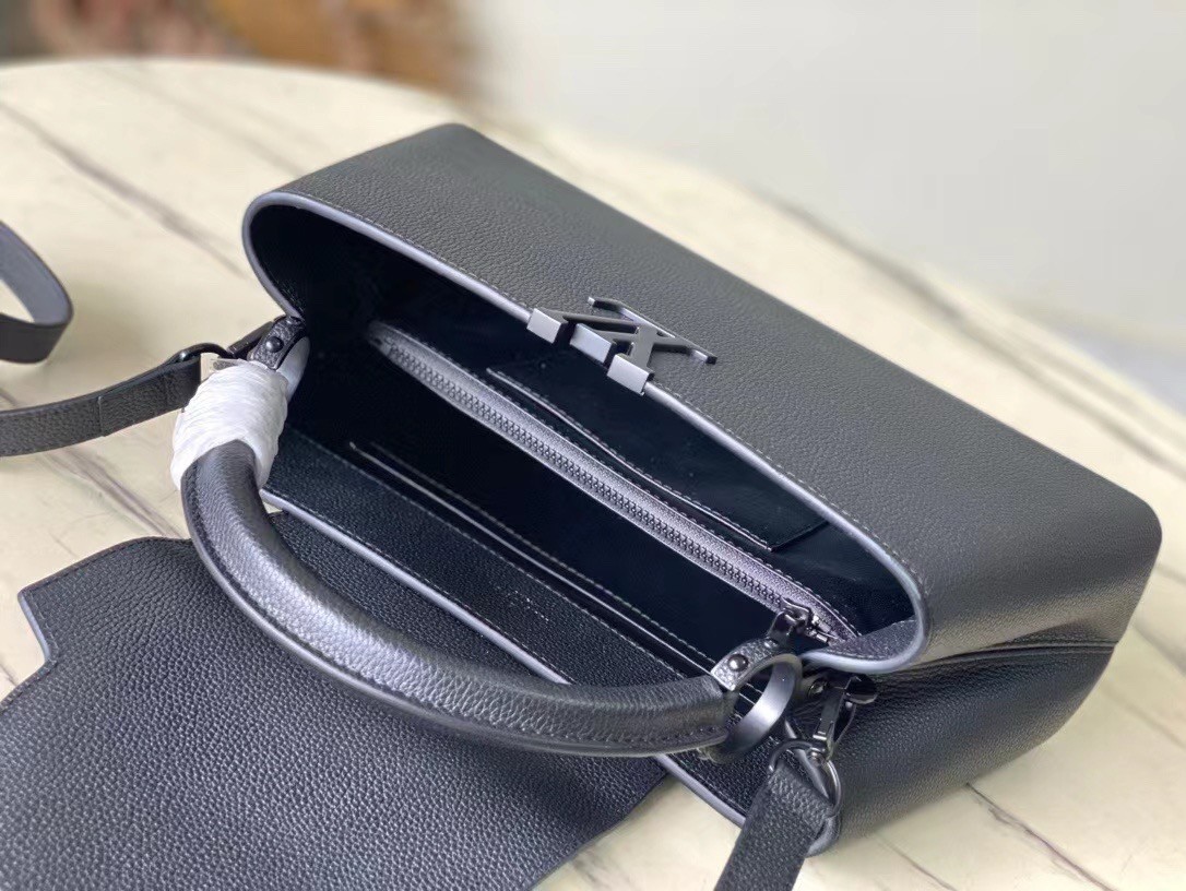 With its stylish new east-west silhouette, the Capucines MM handbag brings a fresh perspective to a House icon. Crafted from luxurious matte calfskin and embellished with matte hardware, this capacious model easily accommodates two smartphones, a long wallet and other daily essentials. The detachable leather strap is adjustable too, for extra styling versatility.