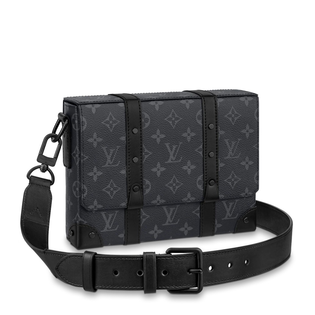 The Trunk Messenger is a small rectangular bag made from Monogram Eclipse canvas and finished with matte-black rivets and reinforced black-leather corners inspired by those on Louis Vuitton’s iconic trunks. It features an adjustable and removeable strap and numerous pockets, inside and out, to keep things organized and accessible.